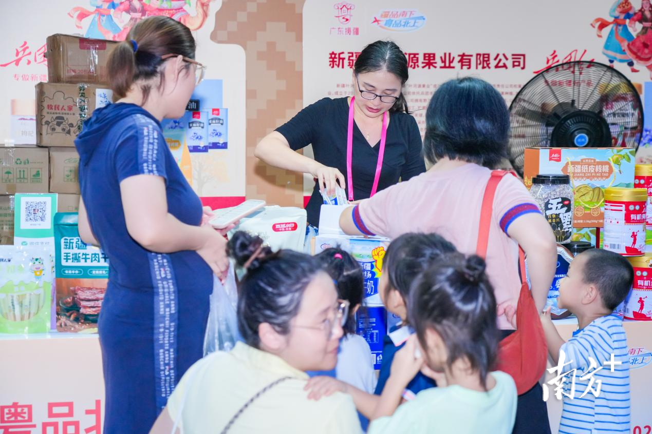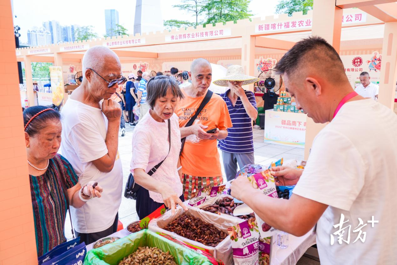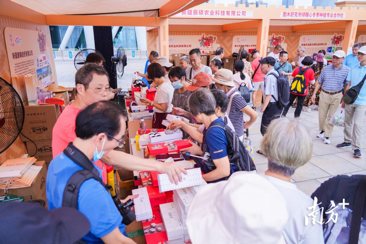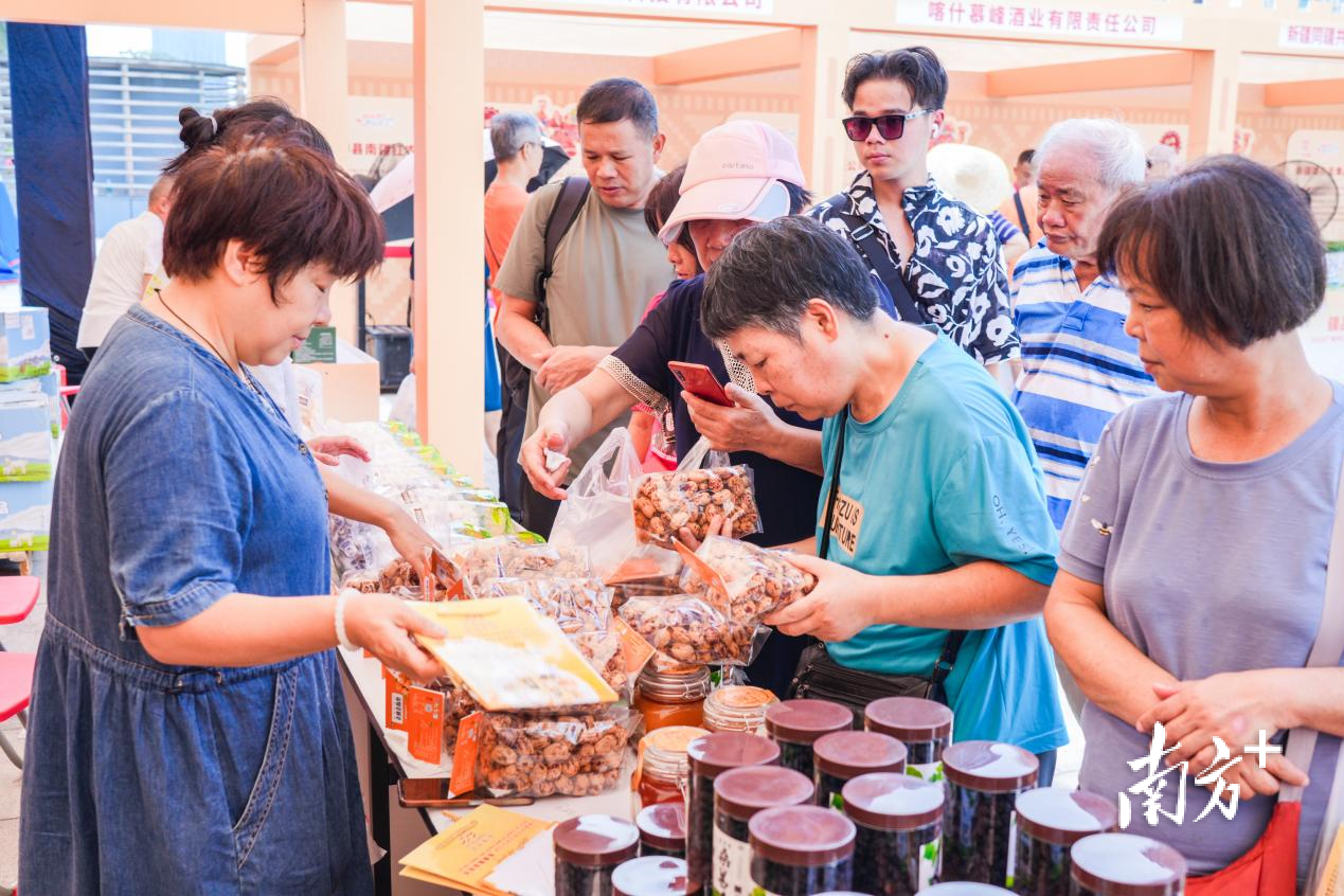 9月28-30日,“疆品南下 粤品北上”2025广东对口援疆地区名优产品走进大湾区展销活动在广州塔广场举行,广州塔下飘起“疆味盛宴”。时值中秋、国庆双节,不少市民前来“囤货”,新疆好物倍受喜爱,现场消费火热。