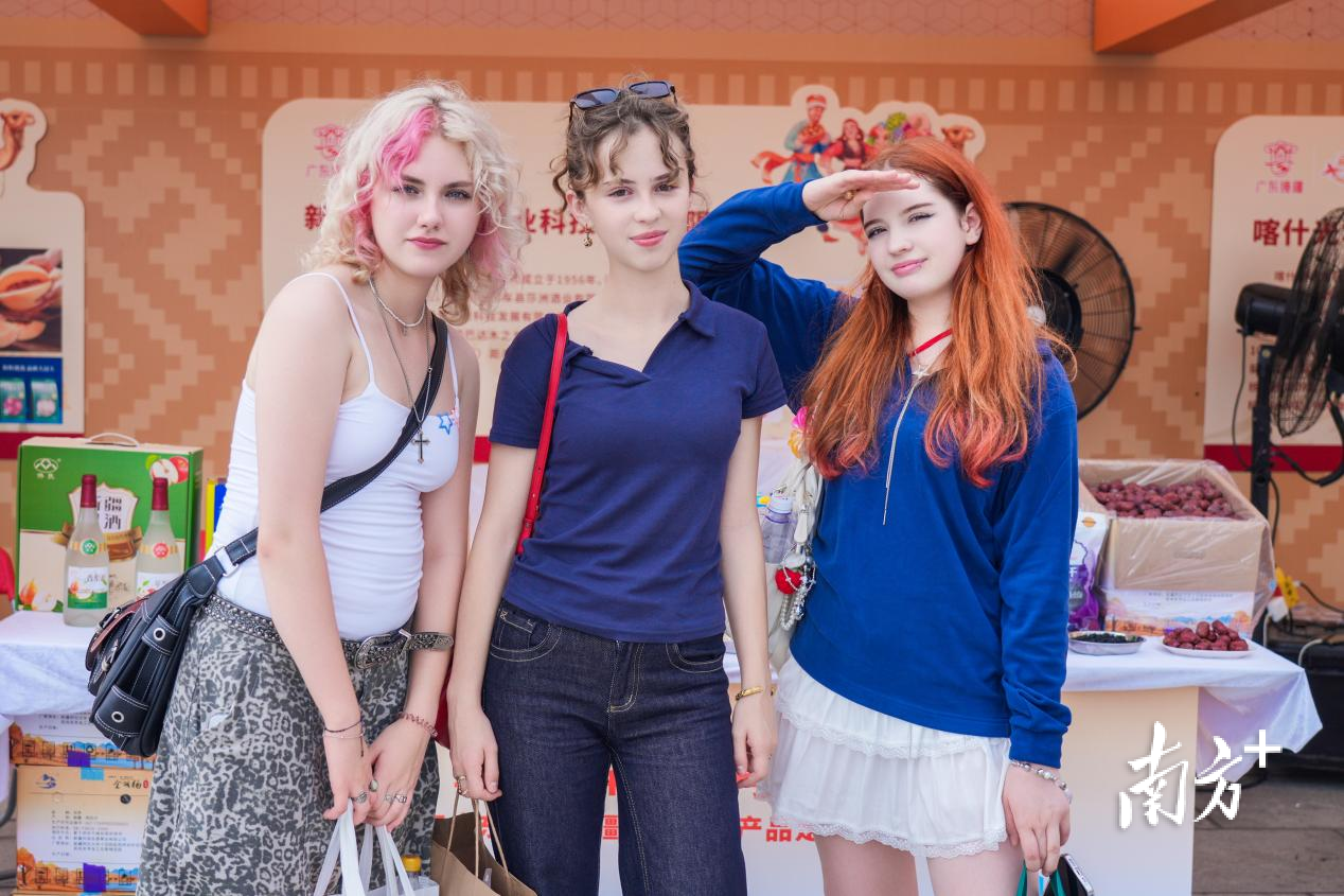 外国游客在参观广州塔途中被疆品吸引目光,满载而归。