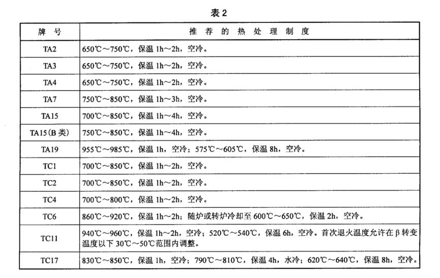 補充并調(diào)整了各牌號鈦合金試樣的推薦熱處理制度;