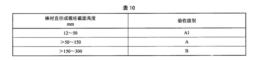 3.6.1 除B類用途的TA15鈦合金棒材外,棒材或鍛坯應(yīng)按GB/T 5193的規(guī)定進行超聲波檢驗,其驗收級別應(yīng)符表10的規(guī)定。
